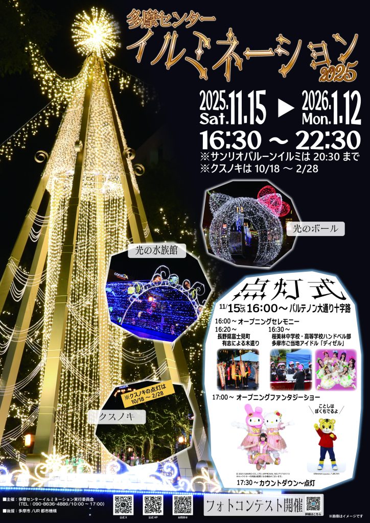 11月15日(土)16時からパルテノン大通りの十字路で「多摩センターイルミネーション2025」の点灯式を開催します!