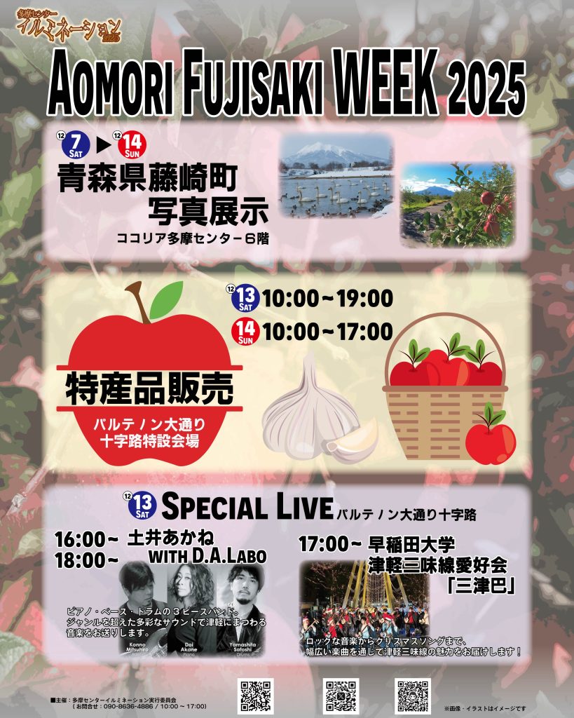 イルミネーションが輝く多摩センターで、青森県藤崎町の特産品と音楽ライブをお楽しみください!