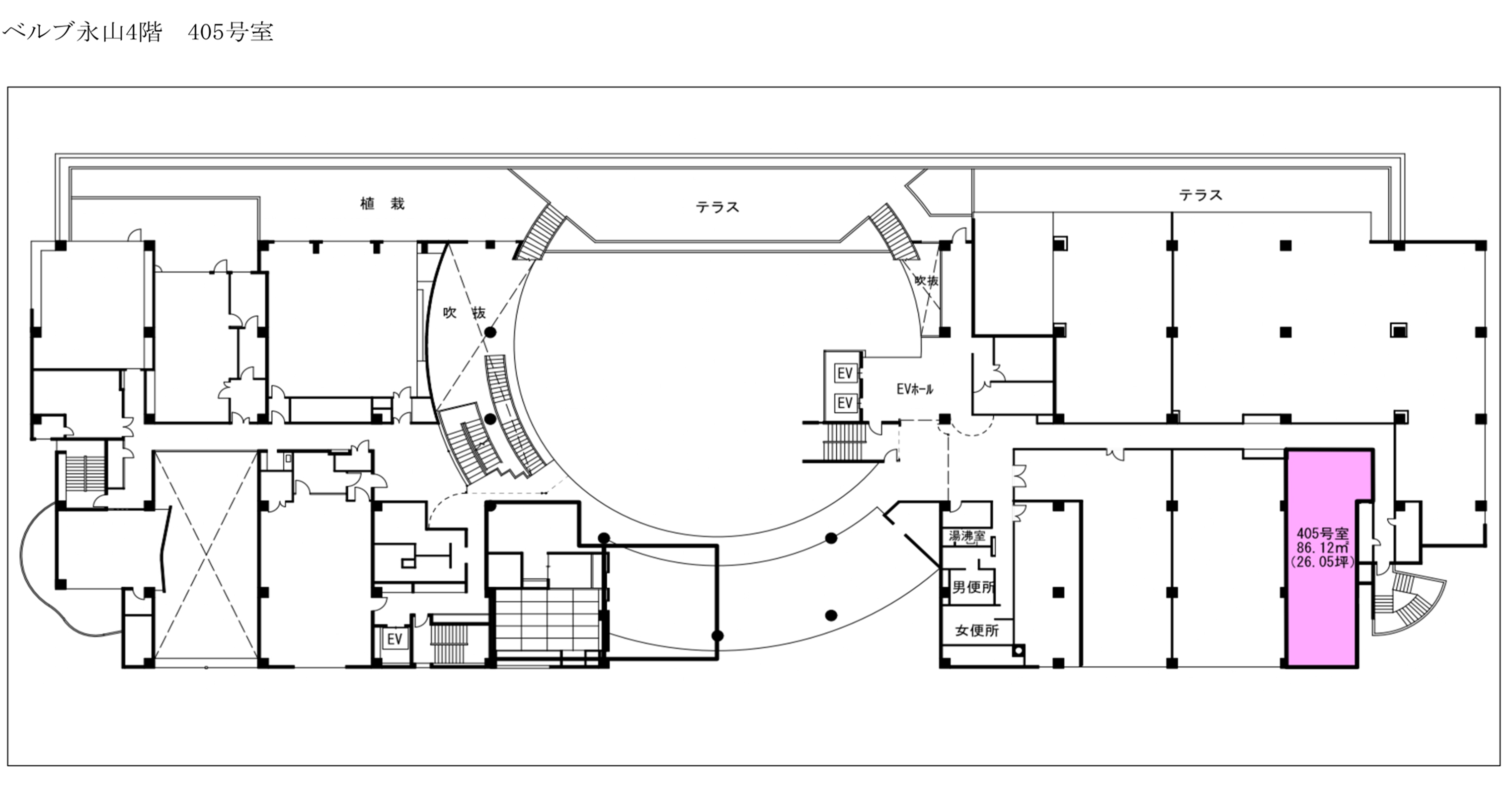 | 4階 405号室 | 86.12m² 26.05坪 | 事務所他 | 即時 |